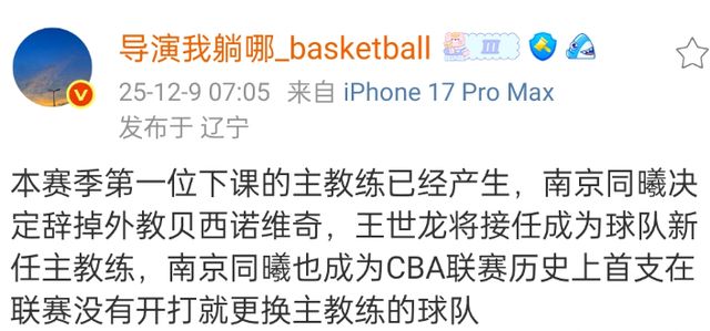 然而就在赛季开始之前,南京同曦的老总喊出了新赛季冲击总冠军的口号,接着在CBA俱乐部杯上,他们可以说是打的一塌糊涂,甚至输给了宁波富邦和NBA的香港金牛,别说冲击总冠军,新赛季恐怕季后赛都困难,所以根据多位媒体人的消息,南京同曦已经调整了教练,贝西诺维奇成为新赛季第一位下课主帅,王世龙大概率接手。